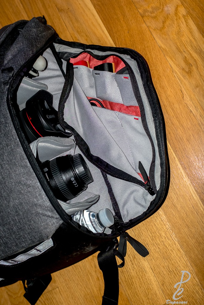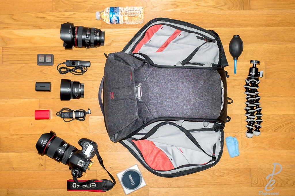 Donc j’ai choisi le « Peak Design Backpack Everyday« . Il y a 2 versions, le 20L et le 30L. J’ai choisi au début le 20L. Parce que je ne voulais pas un sac trop gros, et l’équipement que je mets dedans est suffisant pour sortir léger. Puis je me suis équipé du 30L pour travailler et remplir efficacement mon matos photo.