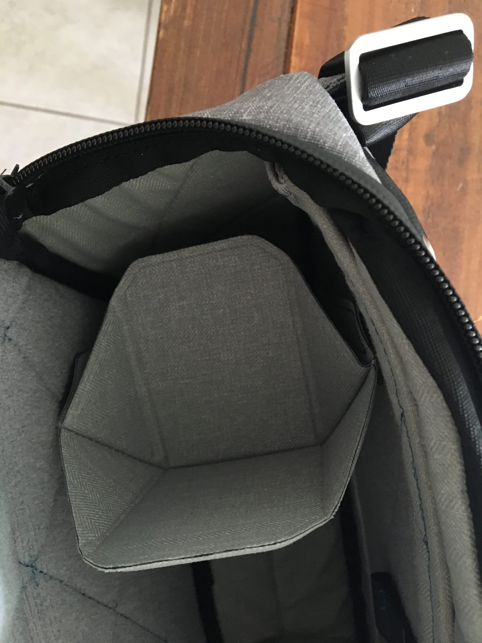 Astuce : Quand j’ai reçu le sac je me suis dis, « mince » il se porte à droite! Je me suis dis alors c’est dommage je l’ai déjà adopté! Bon je vais m’adapté en le portant à droite. Mais finalement la sangle s’enlève et on peut tout a fait le porter à gauche en intervertissant la sangle. Elle se détache au niveau du réglage. Par contre les ZIP eux ne change pas et pour la poche principal il y’en a qu’un seul ZIP sur le Peak Design sling.
